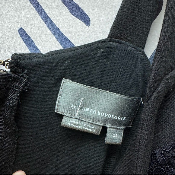 This is a cute black bustier top with delicate lace accents. Ideal for stylish evenings! Size XS from Anthropologie.